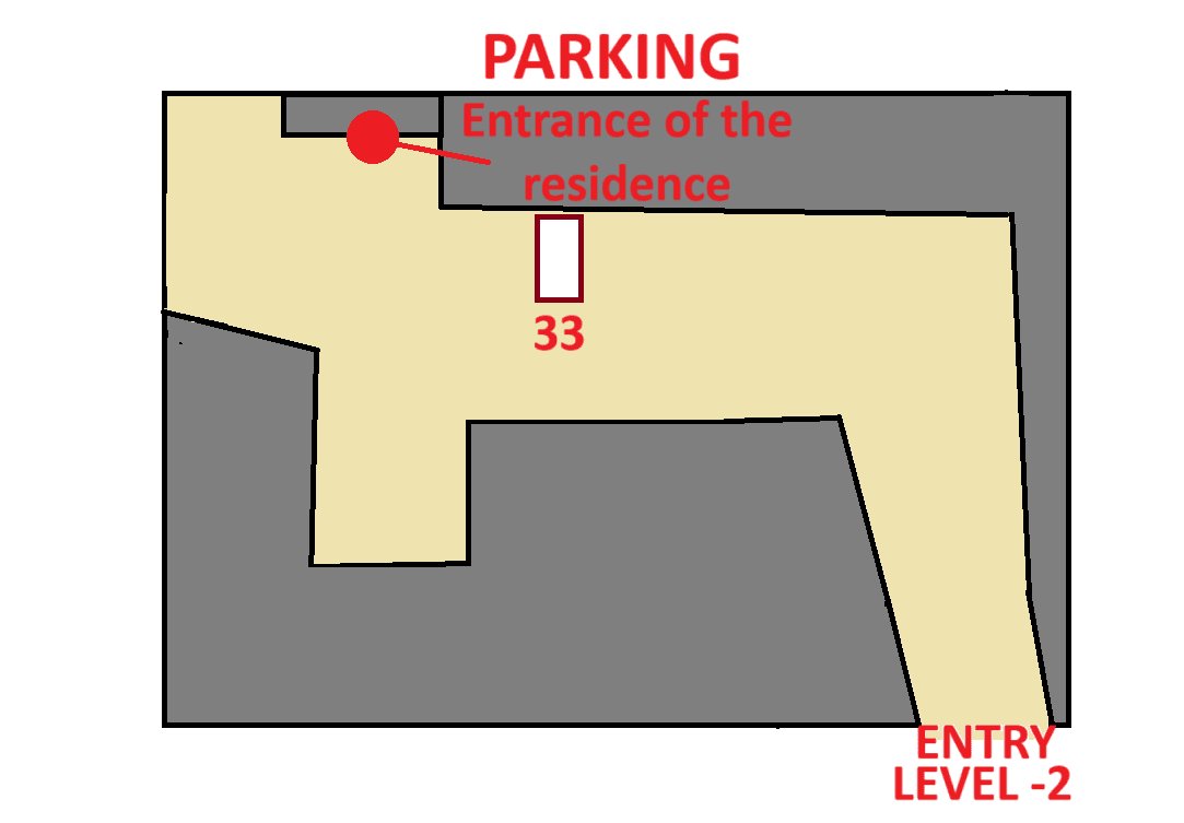 Votre place de parking est la n°33, située au niveau -2 du garage.